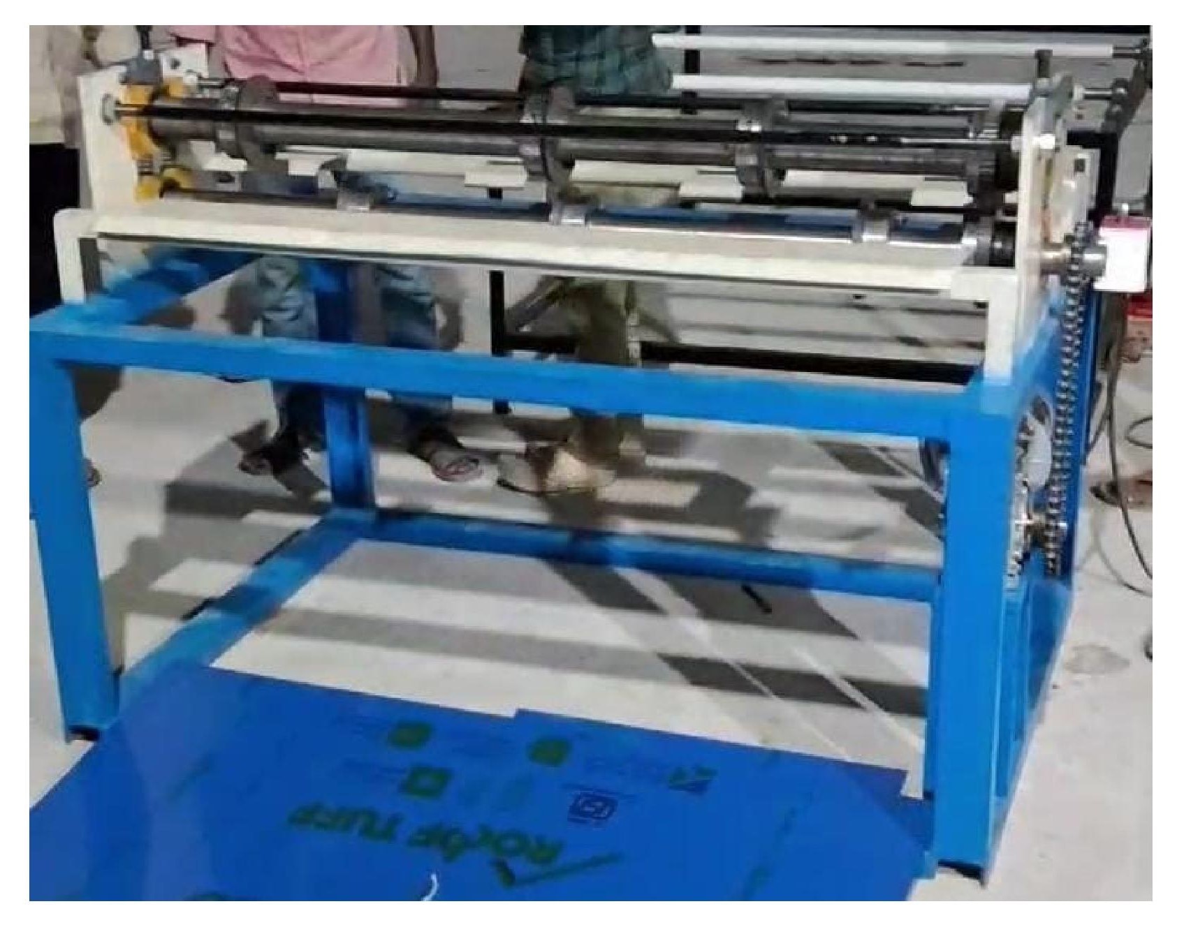 Specifications: 1) Machine Size - 1600 mm x 1000 mm x 1500 mm 2) Number of Cutters - 3 Set of cutter (6 no’s) 3) Handling sheet - 1220 mm width 0.25 to 1mm ( Roofing Sheet ) 4) Drive System - 0.5 HP motor with gearbox 5) Cutter Material - HCHCR - D3 6) Cross cutting - Manual Model Liver Type with Manual coder 7) Production Speed - 250 Feet/Min